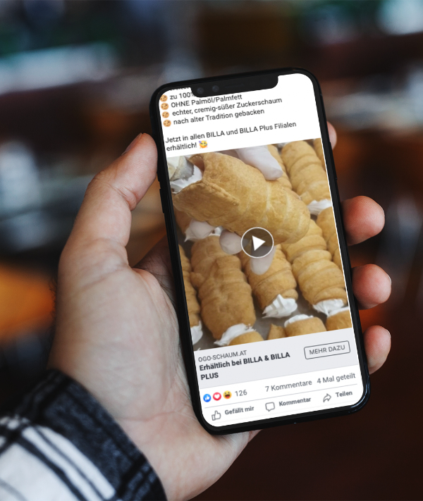 Wir haben uns für ein dunkles, edles Design entschieden. Zum einen verbindet man mit dünkleren Farbnuancen Luxus & Premium, zum anderen ist der Kontrast zu dem hellen Backwarenteig und dem Zucker höher und somit markanter in den Regalen der Einzelhändler.